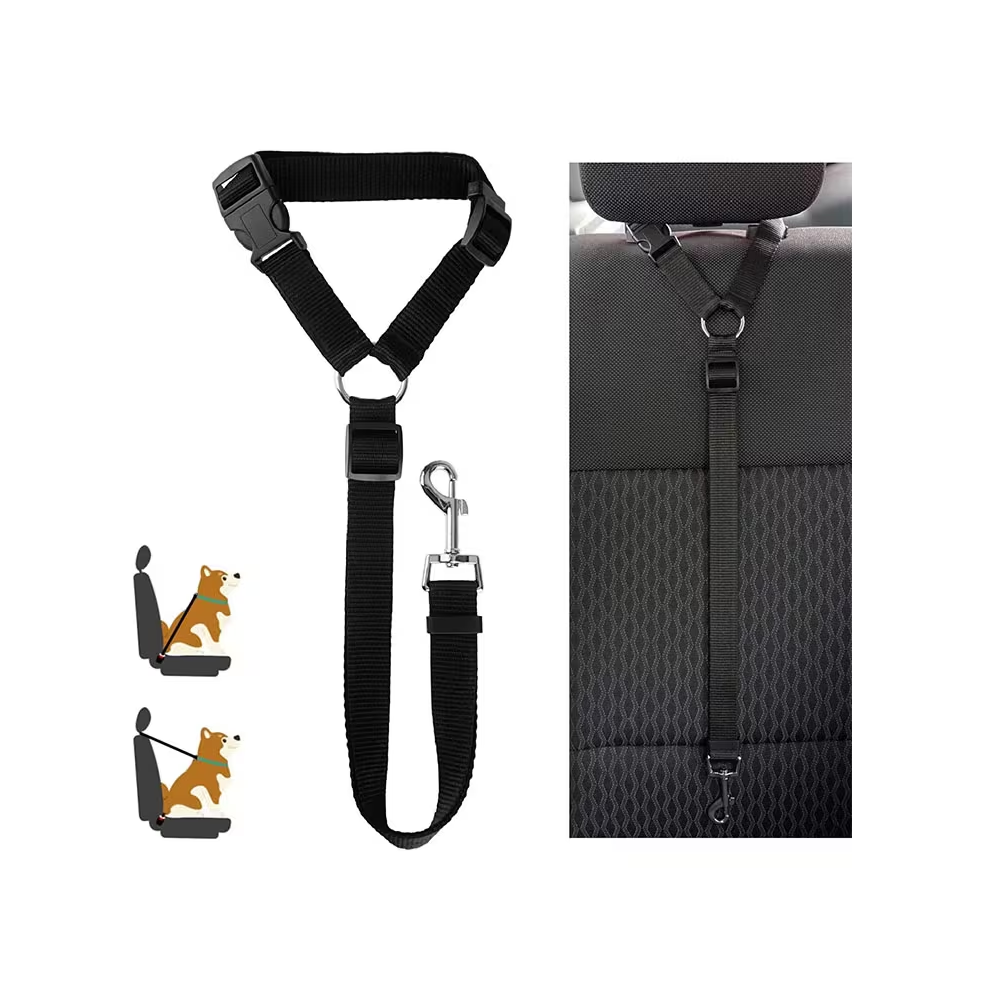 Práctico: las correas de nailon que no se enredan se fijan rápida y fácilmente a los reposacabezas del vehículo. ¡La correa de seguridad se quita fácilmente, lo que la convierte en la correa perfecta para su vehículo!
