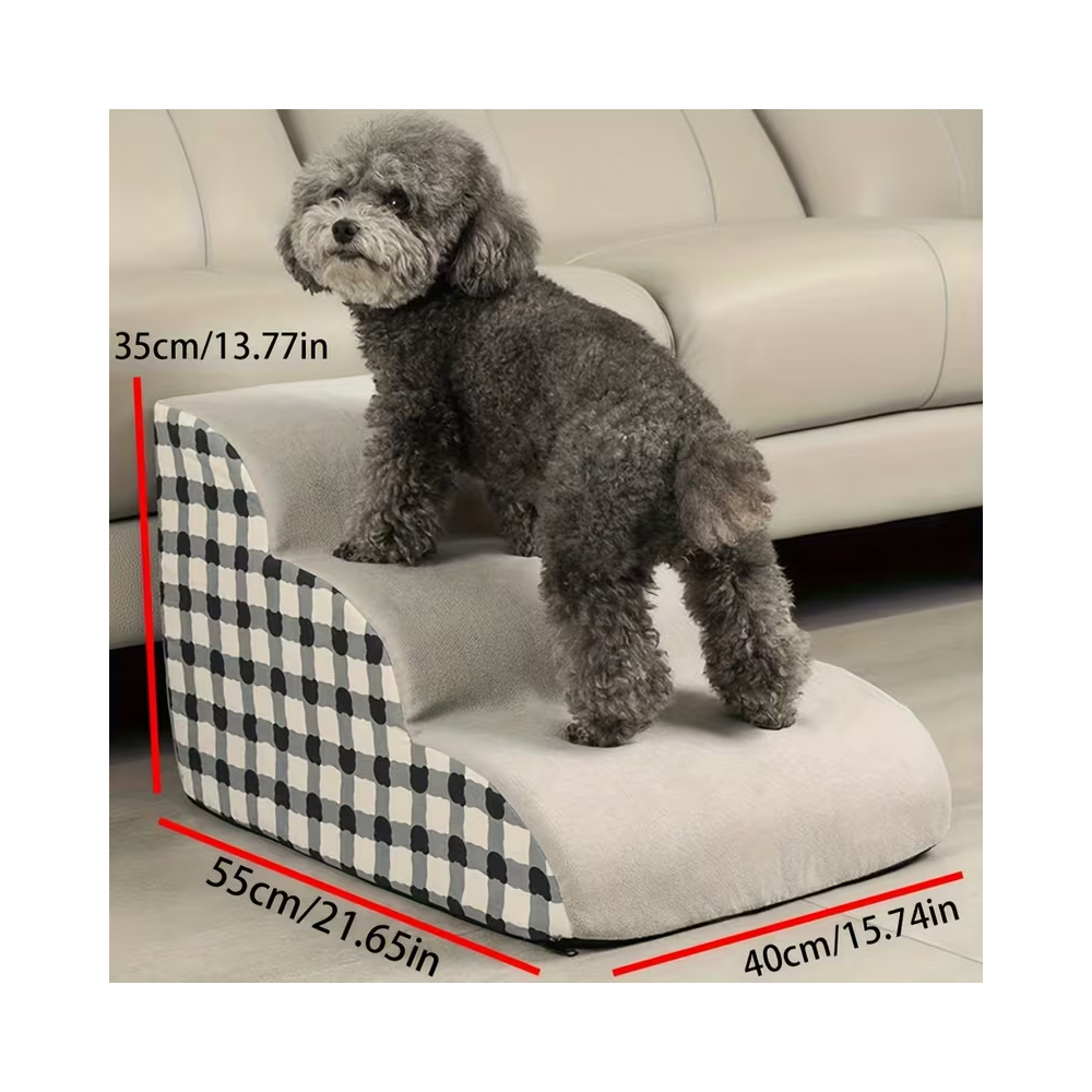La Escalera Rampa para Perros de 3 Pasos Antideslizante está diseñada para brindar seguridad, comodidad y autonomía a tu mascota al subir o bajar de camas, sofás u otras superficies elevadas, sin esfuerzo ni riesgo de lesiones.